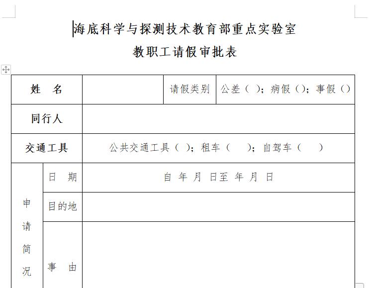海底科学与探测技术教育部重点实验室-教职工请假审批表.doc