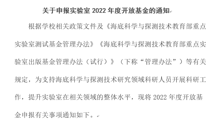 根据学校相关文件规定及《海底科学与探测技术教育部重点实验室测试基金管理办法》《海底科学与探测技术教育...