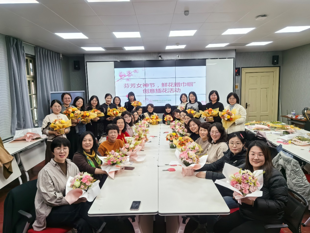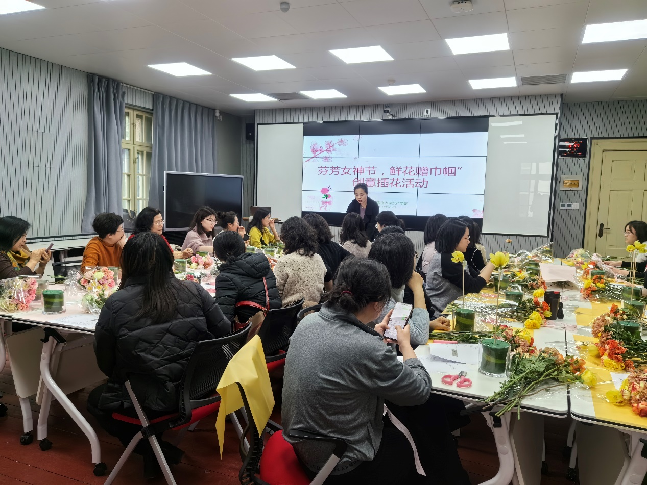 水产学院举办“芬芳女神节,鲜花赠巾帼”创意插花活动