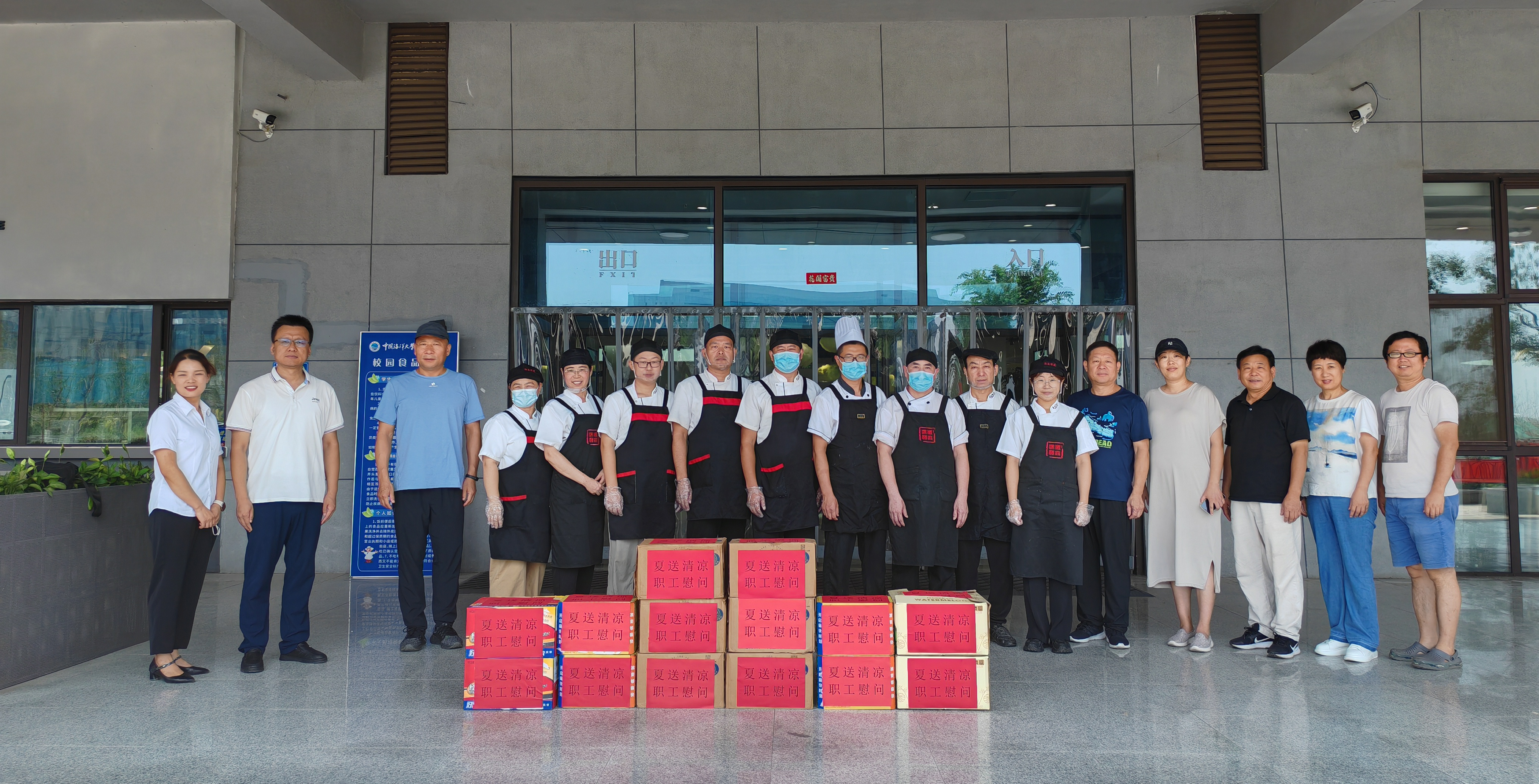 后勤工会开展“夏送清凉”一线职工慰问活动 悠悠夏日长,工会送清凉。8月15日、16日,后勤党委书记王继贵、后勤保障处处长荆莹带队前往后勤各部门一线,看望慰问暑期坚守在岗位的教职工,传达了后勤党委行政领导班子的关心和问候。 王继贵、荆莹先后来到四个校区,分别走访调研了食堂、学生社区、维修项目部、变电站、校医院、幼儿园、服务网点、员工宿舍、崂山校区环境整治工程现场等处。每到一处,他们详细询问暑期工作进展、防暑降温措施及近期工作难点,反复叮嘱职工要注意防暑降温,合理安排工作时间,在保障新学期各项工作正常运转及重点建设项目如期达成的同时,确保自身健康与安全,杜绝各类安全事故的发生。