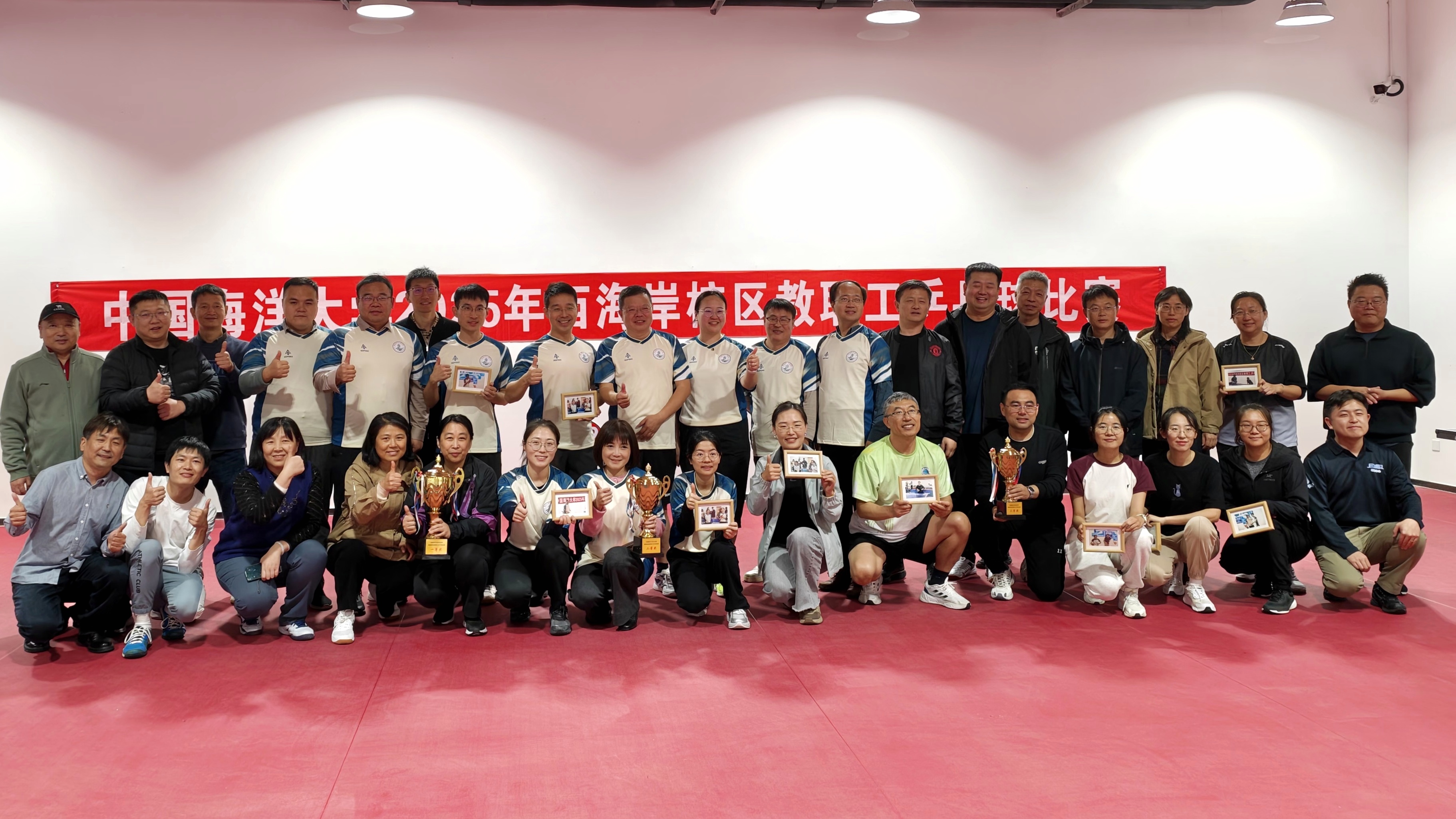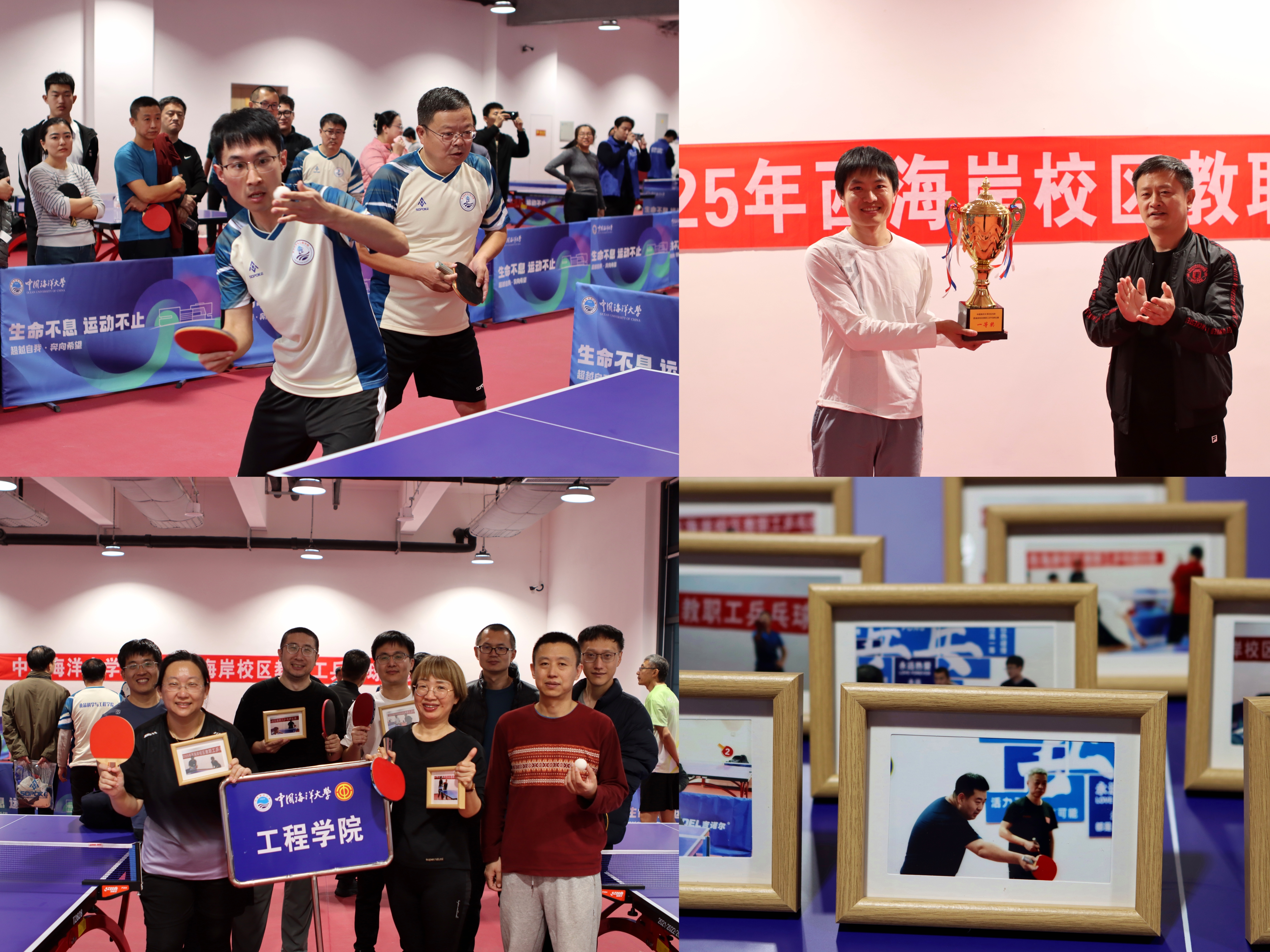 经过激烈的角逐,材料科学与工程学院获得团体赛一等奖,食品科学与工程学院获得团体赛二等奖,西海岸校区机关获得团体赛三等奖。西海岸校区运行管理部部长李永贵、食品科学与工程学院党委书记于德华、校工会副主席曹少鹏为获奖单位颁发奖杯。 西海岸校区5支代表队,60余名教职工参加了比赛。本次比赛不仅为西海岸校区教职工乒乓球球爱好者搭建了展示自我、互动交流的平台,更激活西海岸校园运动基因,让全民健身的热情持续升温,教职工们将把赛场上的活力与韧劲融入日常,为学校高质量发展贡献力量。 |