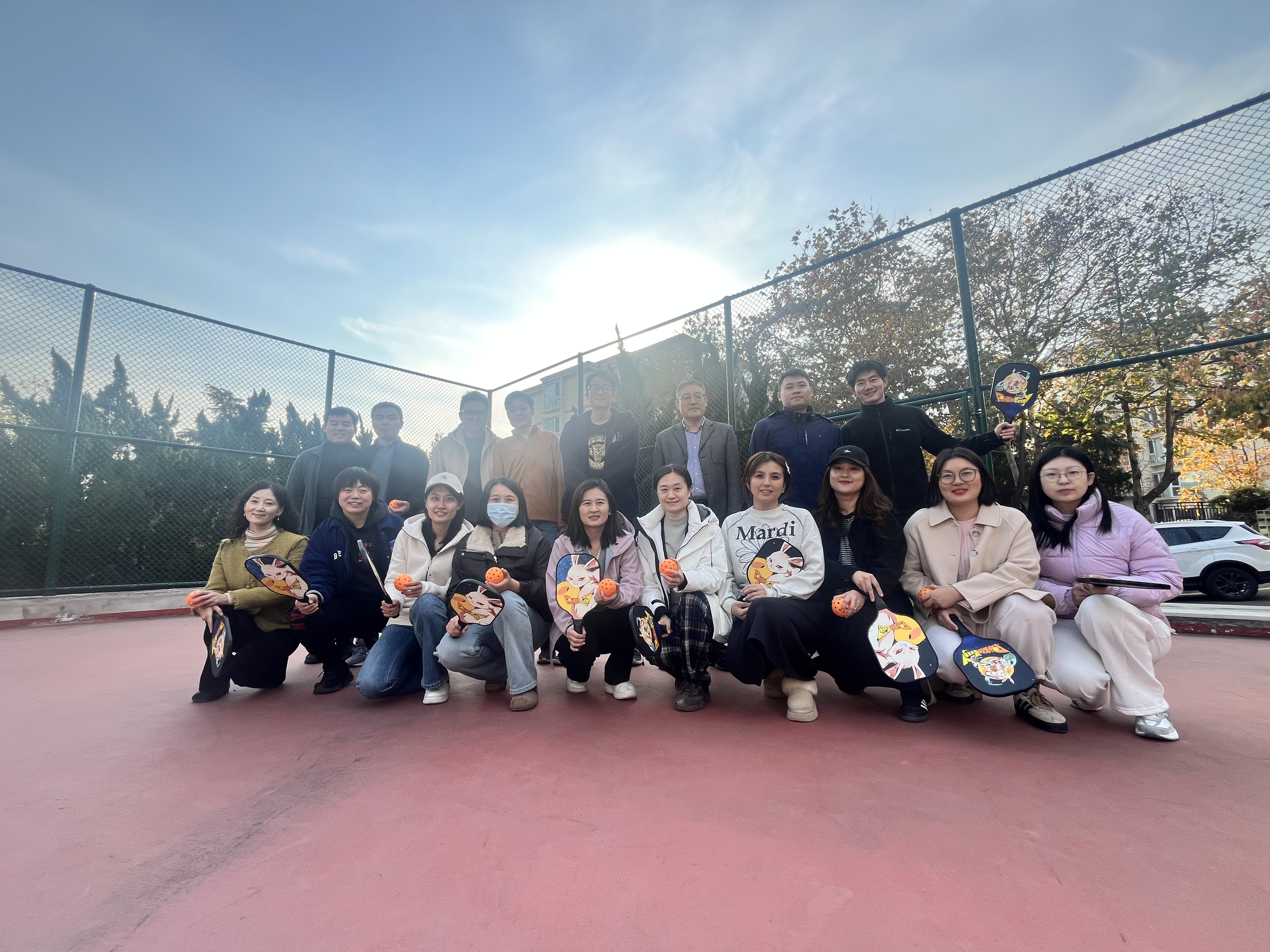 赛前筹备:精心组织,专业引领 学院工会高度重视,提前规划,不仅邀请了专业的匹克球教练在活动当天为教职工进行赛前培训,还准备了充足的比赛器材和场地。教练从匹克球的基本规则、握拍姿势、发球技巧到战术运用等方面进行了细致讲解和示范,让原本对匹克球不太熟悉的教职工们迅速掌握了要领,为正式比赛做好了充分准备。 赛场风采:激情对决,活力绽放 比赛现场,气氛热烈非凡。18名教职工分为若干小组,展开激烈角逐。赛场上,选手们个个精神抖擞,斗志昂扬。每一次精彩的扣杀、每一次巧妙的救球都引得现场观众阵阵喝彩。