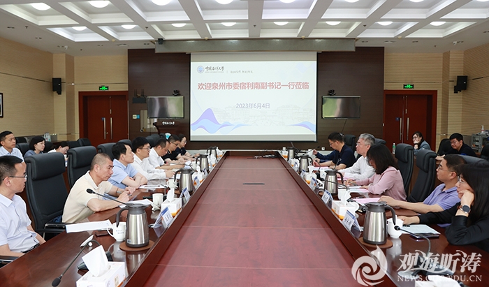观海听涛讯 6月4日,福建省泉州市委副书记宿利南、副市长苏耿聪一行到开云电竞网址调研并座谈。校长于志刚,党委常委、校长助理、国内合作工作办公室主任周珊珊出席座谈会。