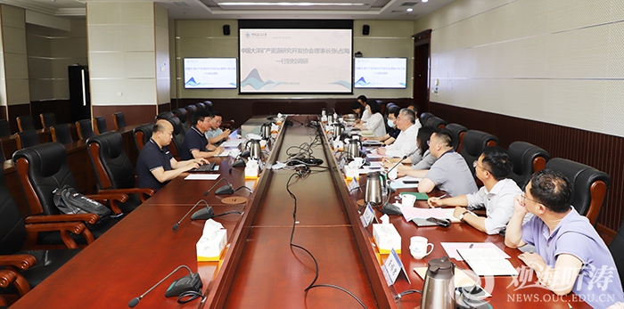 座谈会上,与会人员共同观看了学校宣传片《蓝色华章》。于志刚对张占海一行来访表示欢迎。他介绍了学校近几年在学科建设、人才队伍、科学研究、服务社会等方面取得的突出成绩,希望双方持续加强合作,组织国内相关力量共同开展深海大洋研究、矿产资源勘探开发等工作,开放共享大洋矿产资源样品和数据,谋划组建跨界工作组维护国家利益和海洋权益,同时凝聚多方力量持续强化海洋科普工作,支持打造体系化国家海洋博物馆,不断推动双方在海洋科研、科普和海洋文化等领域深度融合发展。