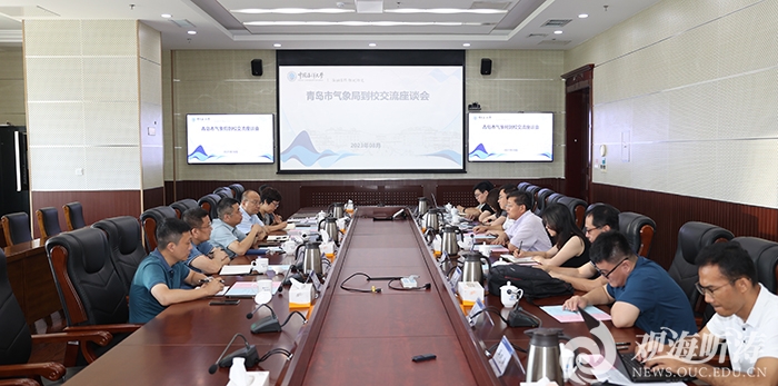 座谈会前,金琪一行实地调研了学校海洋高等研究院。青岛市气象局业务科技处、市气象台、市气象服务中心,学校科学技术处、国内合作工作办公室、海洋与大气学院、信息科学与工程学部、数学科学学院等单位相关负责人、专家参加座谈。