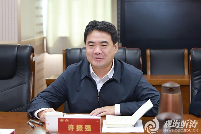 许振强首先对母校百年发展取得的辉煌成就表示祝贺,同时感谢海大一直以来对广海局的支持。他简要介绍了广海局的发展历程,及近年来取得的突出成绩。他指出,海洋将海大与广海局紧密相连,二者具有天然的联系。本次全面合作协议的签署,是双方在过去良好合作基础上,面向未来共同使命开启的新篇章。希望双方发挥各自优势特色,在合作机制、科技创新、空间布局、人才培养等方面加强协作,取得更丰硕的成果,共同服务国家战略需求。