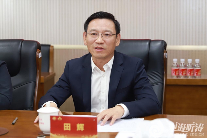 田辉对许振强一行的到来表示欢迎,对广州海洋地质调查局对学校事业发展的关心和支持表示感谢。他指出,近年来学校坚持“四个面向”,不断加强有组织科研,聚力原创性引领性科技攻关,着力打造科学研究的海大学派,海洋科学和水产学科迈进世界顶尖学科行列,若干研究方向实现国际领跑,学校综合实力、核心竞争力和全球影响力显著提升。在学校建校100周年之际,双方建立全面合作关系具有重要的意义。希望双方充分利用在科学研究、人才培养、重大载体建设等方面的战略合作契机,扎实开展产、学、研、用深度合作,共同推进海洋科技创新,为服务海洋强国建设和区域经济社会发展作出新的更大贡献。