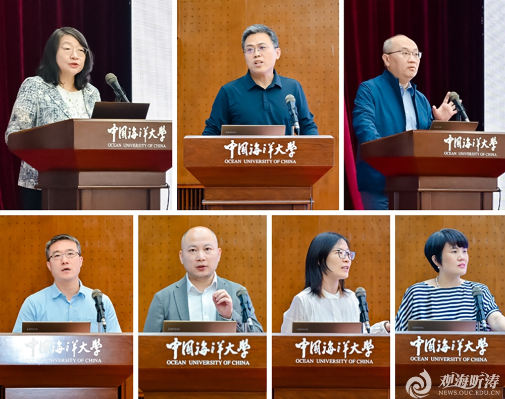 马光辉(左上)、王琳淇(中上)、刘文(右上)、李德海(左下)、王军(左下中)做特邀报告,闫群(右下中)介绍期刊情况,王文婧(右下)作招生宣讲