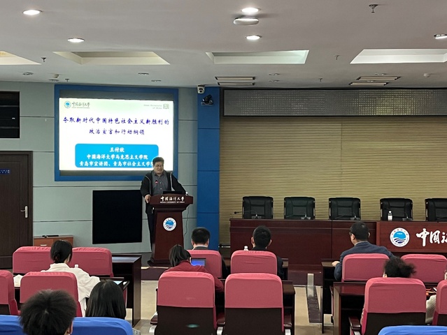 10月27日下午,机关研究生院党支部组织全体党员集体学习党的二十大报告精神,邀请马克思主义学院党委副书记、副院长、青岛市宣讲团成员王付欣老师做了题为《夺取新时代中国特色社会主义新胜利的政治宣言和行动纲领》的专题讲座。本次讲座特邀未来海洋学院学员和文学与新闻传播学院研究生党支部全体党员共同学习。研究生院常务副院长陈朝晖、未来海洋学院副院长马崑参加集体学习。研究生院党支部副书记刘海波主持讲座。