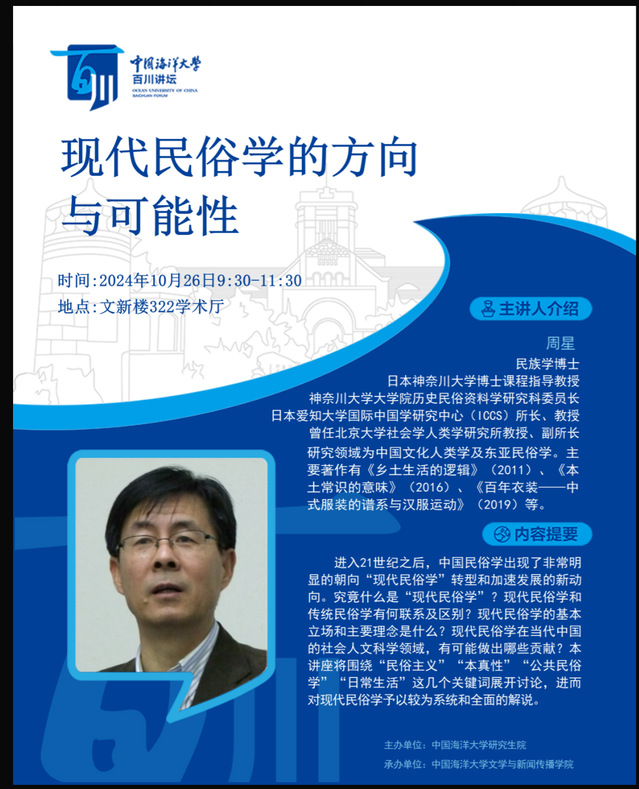 研究生百川讲坛 | 第386讲 周星 :现代民俗学的方向与可能性