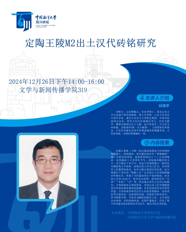 研究生百川讲坛 | 第425讲 刘海宇:定陶王陵M2出土汉代砖铭研究
