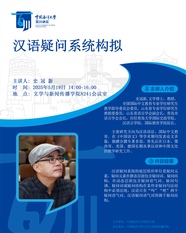 研究生百川讲坛 | 第487讲 史冠新:汉语疑问系统构拟