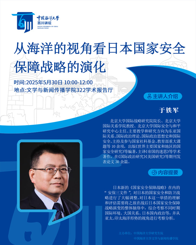 研究生百川讲坛 | 第490讲 于铁军:从海洋的视角看日本国家安全保障战略的演化