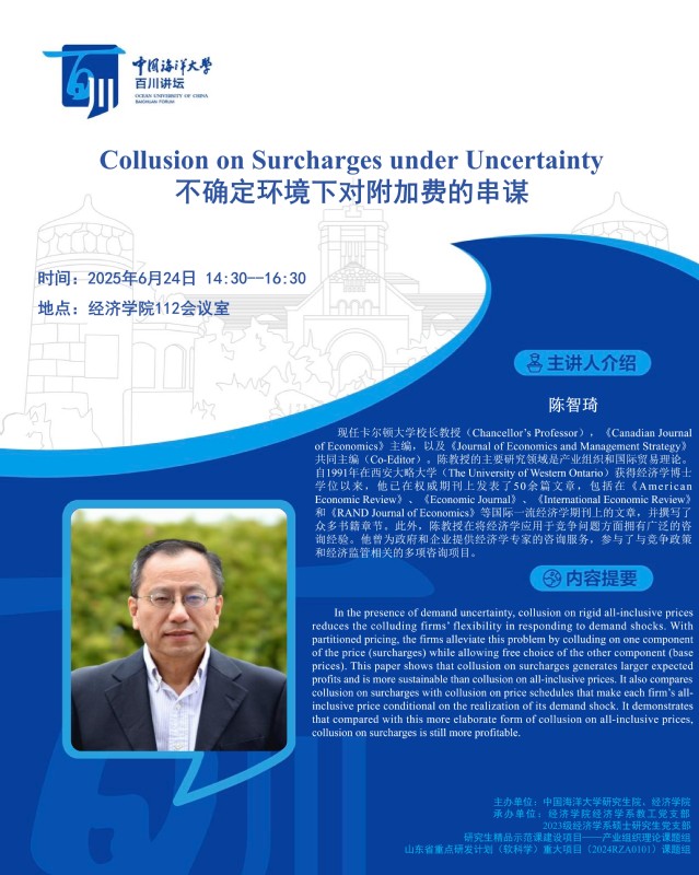 研究生百川讲坛 | 第501讲 陈智琦:不确定环境下对附加费的串谋