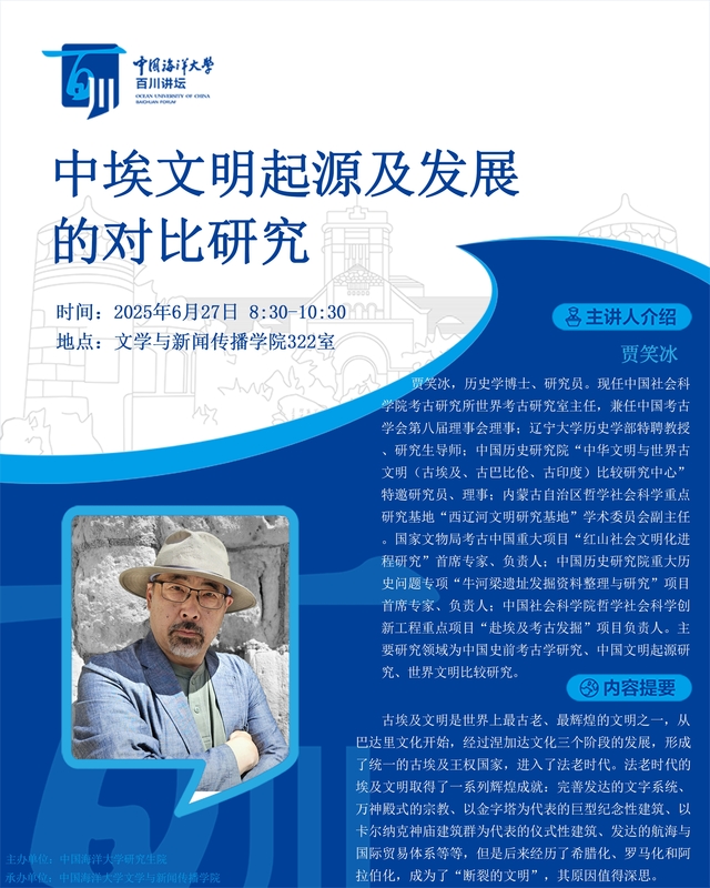 研究生百川讲坛 | 第502讲 贾笑冰:中埃文明起源及发展的对比研究