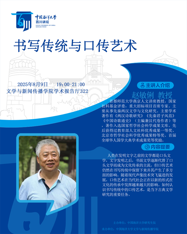 研究生百川讲坛 | 第507讲 赵敏俐:书写传统与口传艺术
