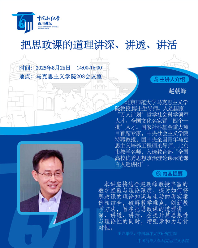研究生百川讲坛 | 第510讲 赵朝峰:把思政课的道理讲深、讲透、讲活