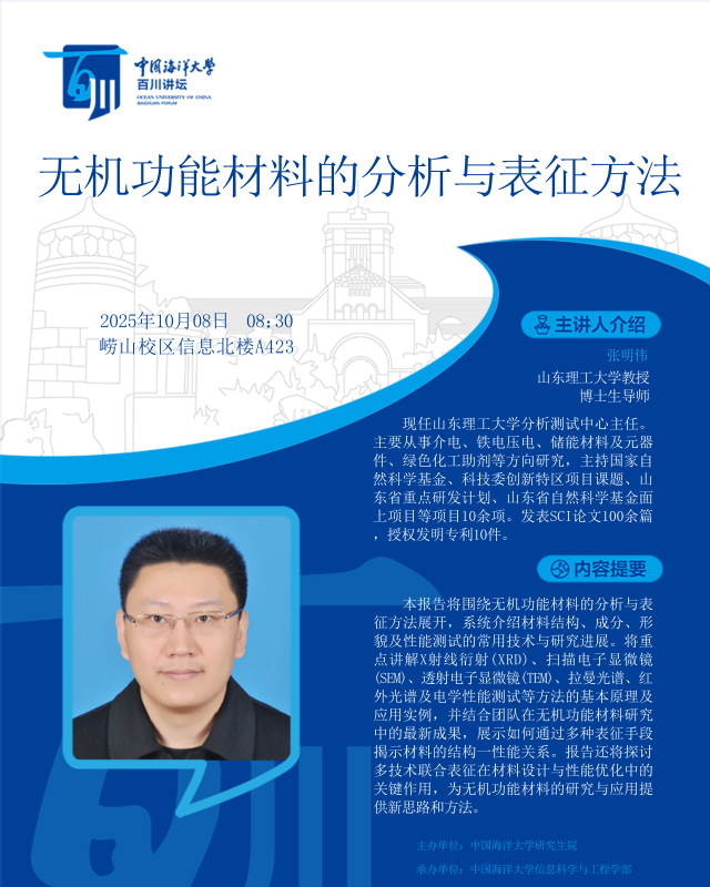 研究生百川讲坛 | 第522讲 张明伟:无机功能材料的分析与表征方法