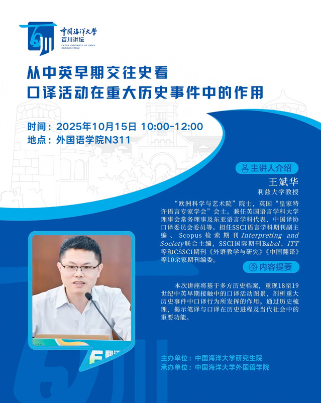 研究生百川讲坛 | 第531讲 王斌华:从中英早期交往史看口译活动在重大历史事件中的作用