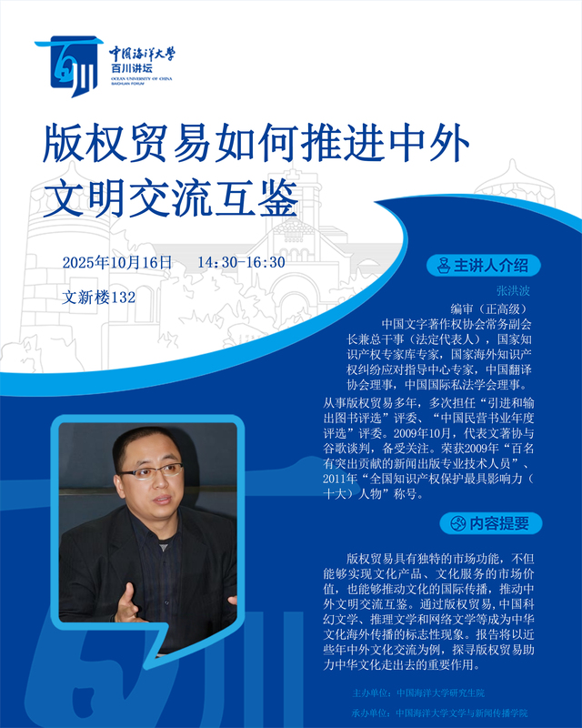 研究生百川讲坛 | 第532讲 张洪波:版权贸易如何推进中外文明交流互鉴