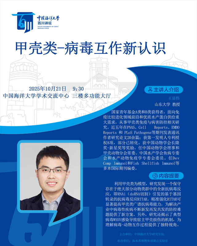 研究生百川讲坛 | 第535讲 王显伟:甲壳类-病毒互作新认识