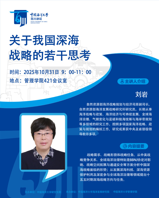 研究生百川讲坛 | 第544讲 刘岩:关于我国深海战略的若干思考