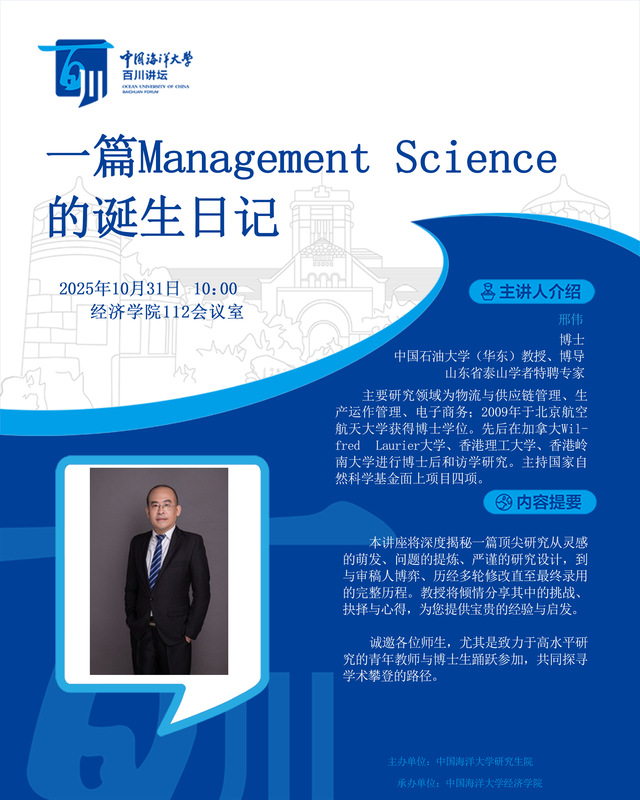 研究生百川讲坛 | 第545讲 邢伟:一篇Management Science的诞生日记