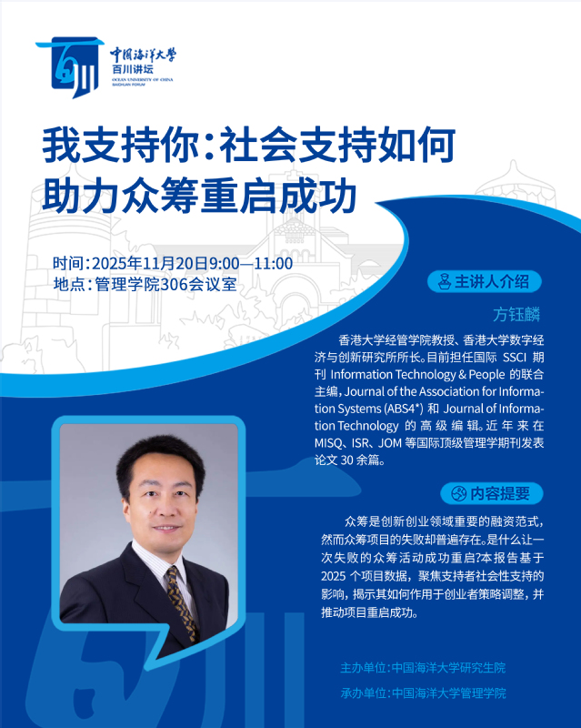 研究生百川讲坛 | 第564讲 方钰麟:我支持你:社会支持如何助力众筹重启成功