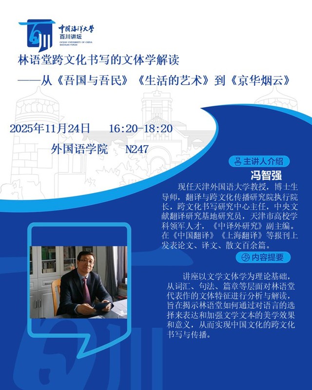 第567讲 冯智强:林语堂跨文化书写的文体学解读——从《吾国与吾民》《生活的艺术》到《京华烟云》