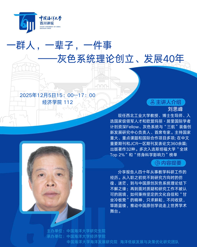 研究生百川讲坛 | 第577讲 刘思峰:一群人,一辈子,一件事——灰色系统理论创立、发展40年