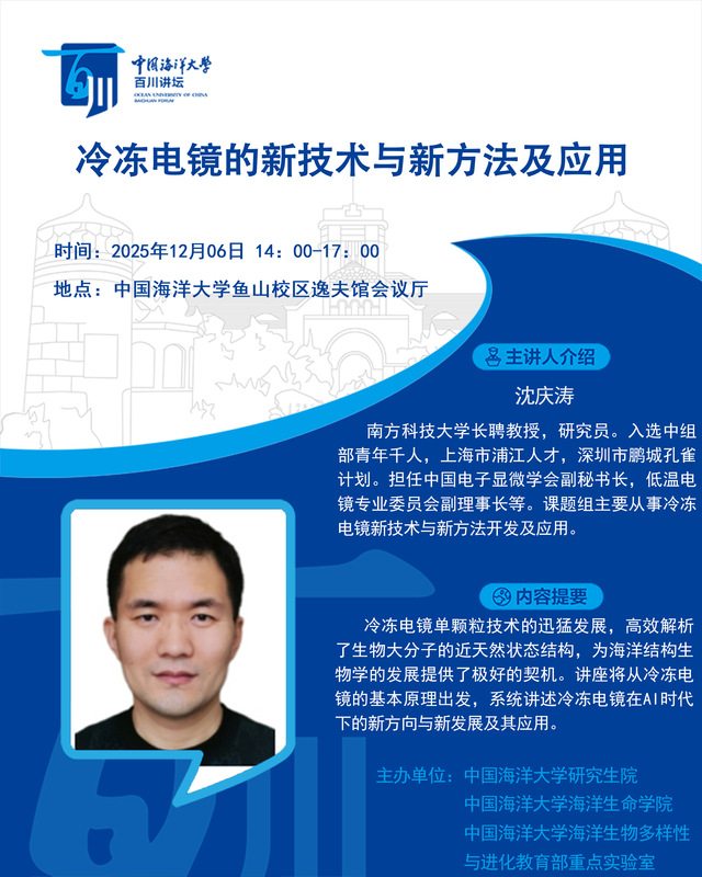 研究生百川讲坛 | 第578讲 沈庆涛:冷冻电镜的新技术与新方法及应用