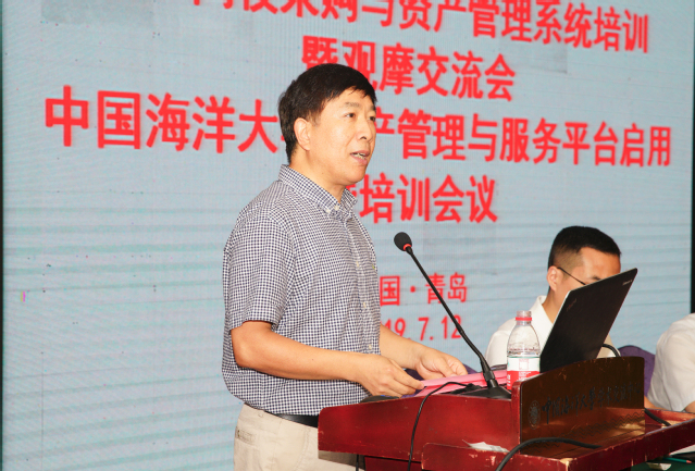 7月12日上午,“2019高校采购与资产管理系统培训暨观摩交流会”、“开云电竞网址资产管理与服务平台启用暨培训会议”在鱼山校区学术交流中心召开。会议由国有资产与实验室管理处联合采购与招标管理中心、财务处、网络与信息中心等部门协办,来自全国50余所高校的会议代表,学校各相关职能部门、各学院分管资产和采购工作的负责人、全校各单位资产管理员近180余人参加了会议。会议由国有资产与实验室管理处处长荆莹主持,学校党委常委、总会计师王剑敏到会并致辞。