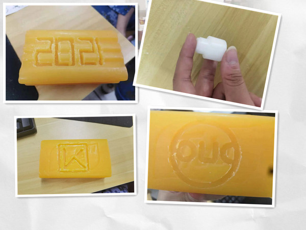 同学们学习了设备的注意事项和编程基本知识后,就开始分组合作,通过编程使台式数控铣床在肥皂上刻出大家想要的图案。