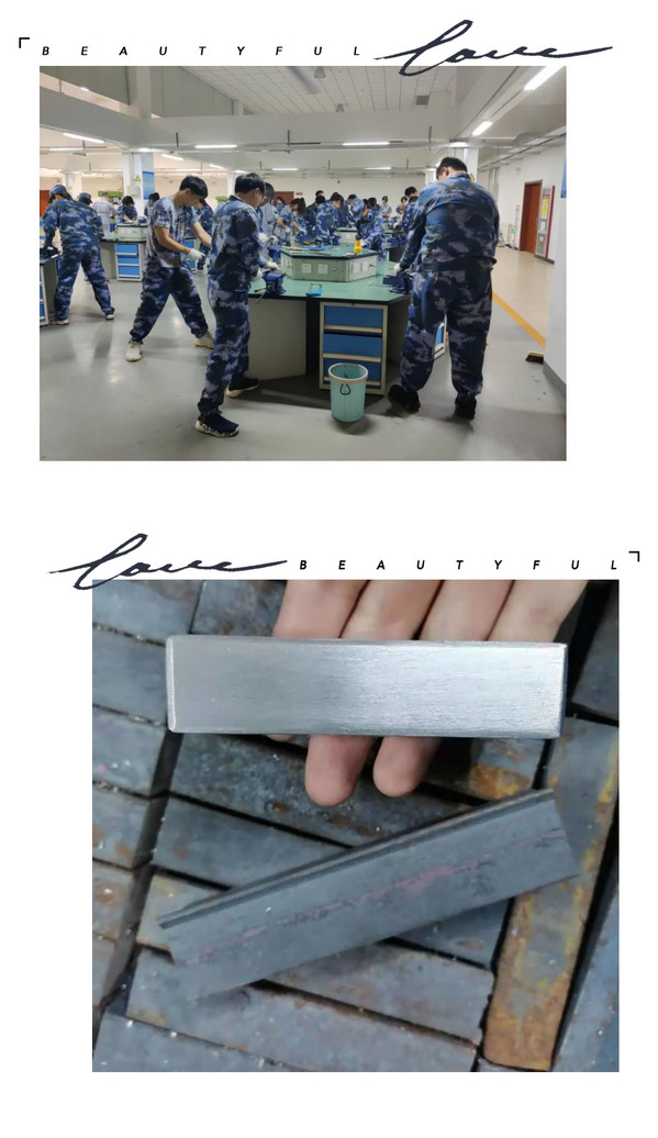 钳工的实习开始于一块锈迹斑斑的生铁,用大锉刀挫掉氧化面,锉平面;按照工件目标尺寸划线,锯割,锉平,锉八角;钻孔,攻丝,整理挫痕。看起来简单的操作重复重复了几次胳膊就开始酸痛,但最后真正拿到打磨光亮的锤头会觉得一整天的专注、投入和努力都是值得的。