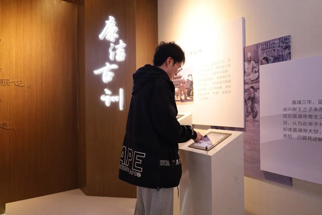 华阳书院是明清时期即墨蓝氏家族创建的在当时颇具影响的书院,蓝氏一族为官清正廉洁,不畏权贵,以刚直上疏而知名。在华阳书院的基础上打造的华阳廉政教育基地,通过全息投像、人机互动等形式,追寻廉洁传统的源头。通过参观,支部党员了解了蓝氏一族流传百年的清廉古训,古镜今鉴,更加深刻地理解“党要管党,全面从严治党”的理政思想,更加深刻地铭记共产党人清正廉洁的政治本色。在此后的学习研讨中,支部党员表示,“为政清廉才能取信于民,秉公用权才能赢得人心,要坚定理想信念、心中‘戒尺’高悬,遵纪守法、以俭修身,自觉担负起党和人民赋予的时代重任。”