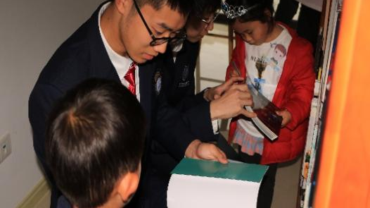 在“小考拉”志愿者的一对一带领下,小朋友们来到24小时自助图书馆。志愿者们变身“讲解员”,进一步为小朋友们介绍书籍分类要求和借阅机器使用方法,并“实战演练”带领小朋友实践图书归类和整理。