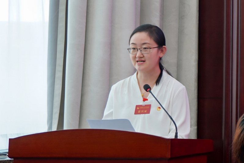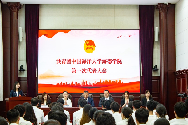 温晴代表学校团委致辞,她表示,海德学院自成立以来,始终坚持落实国家新时代教育对外开放重大部署,为学校全面推进中外合作办学高质量发展做出了积极贡献。三年来,海德学院团委在学院党委和学校团委的坚强领导下,锐意进取、担当作为,推动学院共青团事业蓬勃发展。学院团委推进实施“筑魂工程”,引领团员青年坚定理想信念;着力打造“筑梦工程”,为团员青年提供广阔舞台;扎实开展“筑行工程”,带动团员青年在实践中强本领、做贡献;用心培育“筑心工程”,培育学生积极向上的健康心态。站在新的历史起点上,温晴代表学校团委,向海德学院共青团组织和团员青年们提出三点希望:第一,坚定理想信念,筑牢政治根基;第二,肩负时代使命,锤炼过硬本领;第三,坚持自我革命,全面从严治团。她强调,作为新时代的海大青年,要不断把自己的小我融入祖国的大我、人民的大我之中,以奋斗姿态激扬青春,为建设特色显著的世界一流大学、续写谋海济国蓝色华章汇聚磅礴力量,为全面建设社会主义现代化国家、全面推进中华民族伟大复兴而团结奋斗!