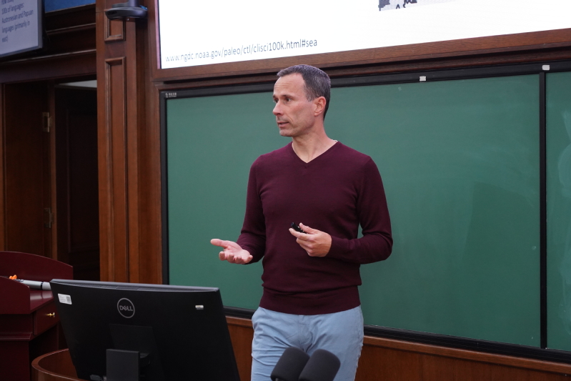 此次讲座上,Bastien Llamas 博士分享了他近期的学术成果“历史上巴布亚人迁徙到华莱士的遗传起源和影响”。通过人类古基因数据比对分析,对印度尼西亚华莱士群岛及西巴布亚地区的人类遗传史展开全面介绍,并结合语言学与考古学方面的证据,对华莱士地区与巴布亚相关的祖先起源提出新的观点。