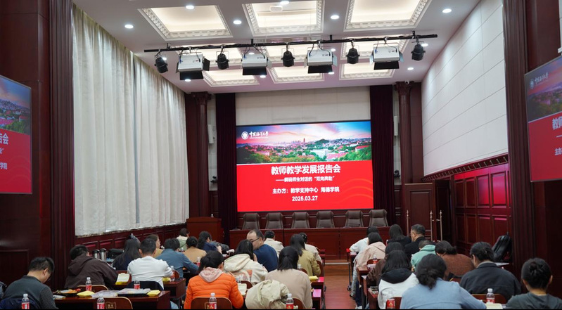3月27日,海德学院与教学支持中心在行知楼西式报告厅联合举办“解码师生对话的双向奔赴”教师教学发展报告会。报告会特邀环境科学与工程学院教授庄昀筠主讲,海德学院党委书记马宇虹,教学支持中心副主任姜永玲及来自学校15个院系的49位教师代表参加会议。