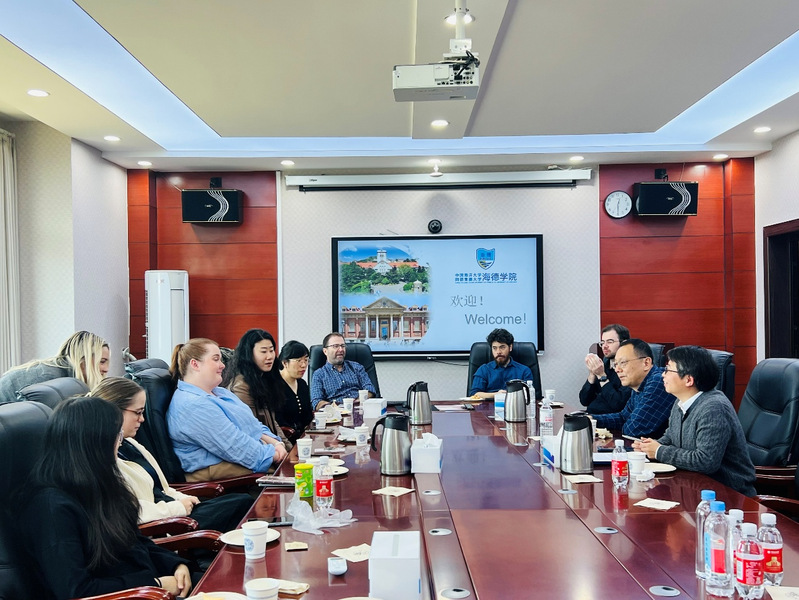 首先,董平对阿德莱德大学各位老师来校面授课程表示欢迎和感谢。董平提到,外方教师来校面授交流,是学生基础国际化教学的重要形式,也是学生熟悉澳洲教学模式、快速成长的好机会,同时为中外教师开展教学交流和学术讨论提供了良好平台。接着,教学事务办公室主任于繁千惠通过对教师工作要求的解读,增进了彼此间对中外教学差异的了解和认识,助推了未来双方的密切合作以及海德学院对国际先进教学的吸收和应用。