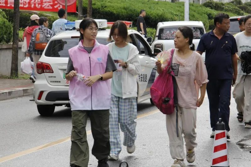 校园内指示清晰,志愿者穿梭忙碌。从帮忙搬运行李到引导注册,“一站式”的便捷服务化解着新生的忐忑。家长休息区内,工作人员耐心沟通、真诚解答,滴滴雨水映衬着每一张笑脸,也让这场相遇充满了家的温度。