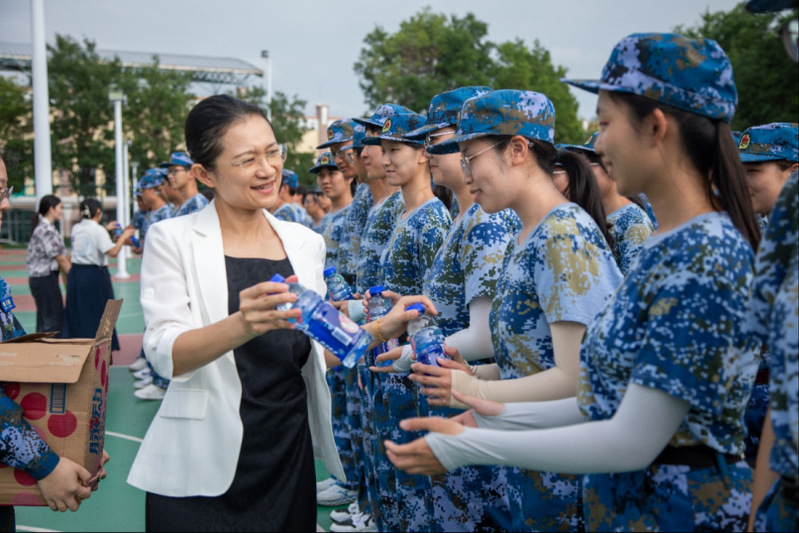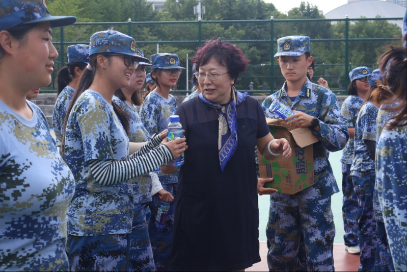 9月15日上午,海德学院党委书记马宇虹,院长汪岷,党委副书记、副院长祁华等学院领导老师前往崂山校区看望并慰问正在军训的2025级海德学子,为他们送去补给品,并鼓励大家继续保持高昂斗志,圆满完成军训任务。
