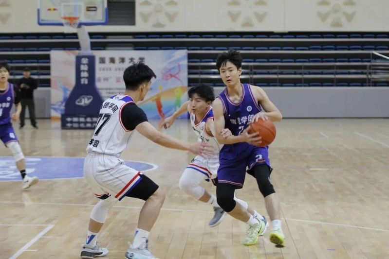 第二节开始,77号魏祥睿连续两次罚篮命中,不断扩大海德学院的比分优势。14号梁子琛内线强势防守,为队友创造投篮机会。但信息学部收缩防守,致使海德学院出现几次失误,分差逐渐缩小。双方攻防交替,气氛焦灼,比分拉开又追平。第二节结束,海德学院落后。