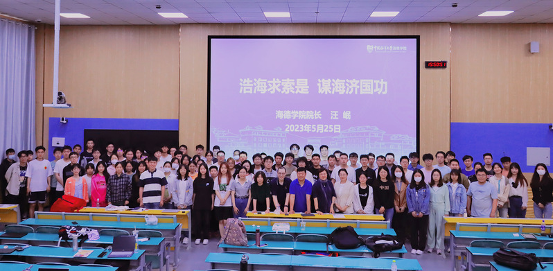 Mr. Wang began by telling the students about the valiant responsibilities and outstanding contributions of the people of Hai University in building China into a maritime power. He also shared with the students the academic experience, scientific research stories and outstanding achievements of Academicians Guan Huashi, Academicians Maconson, Academicians Bao Zhenmin and Song Microwaves, conveying to the students the spirit of the four academicians who are committed to serving the country.