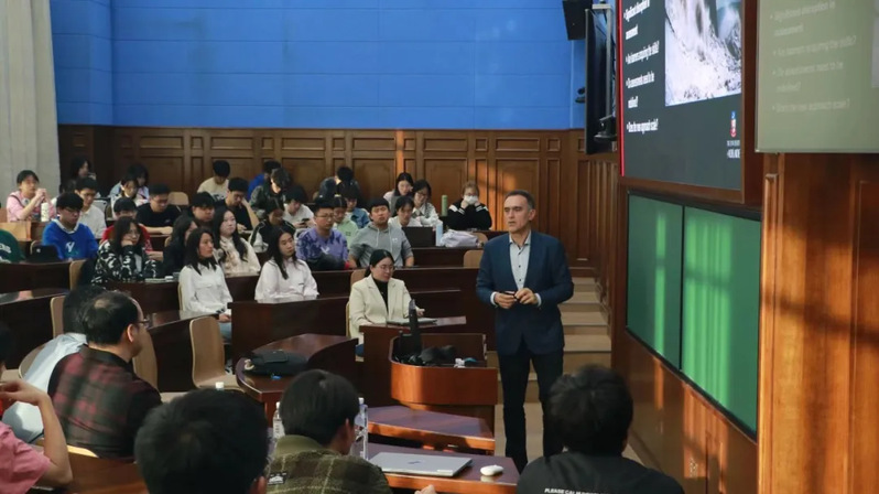 In this era of rapid information technology development, digital technologies and artificial intelligence are quietly reshaping the landscape of the education industry. On April 17th, Haide College organized a specialized academic lecture on Big Data and Digitalized Teaching at the Xingzhi Building Chinese-style Auditorium, featuring Professor Abelardo Pardo, Dean of the School of Computer Science and Mathematics at the University of Adelaide, as the keynote speaker. The lecture was chaired by Associate Professor Chen Piwei from the School of Mathematical Sciences. Among the attendees were Ding Boyin, Academic Director of Haide College at the University of Adelaide, Assistant Professor Fan Zhongping from Haide College, and Guo Chunning, Secretary of Student Affairs. Nearly a hundred Haide college students actively participated in the discussion and learning session.