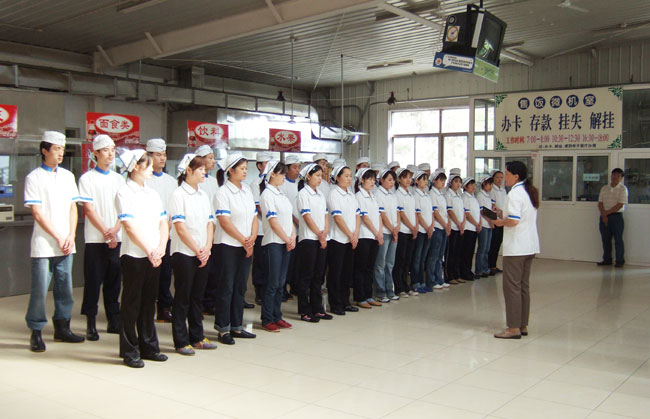 自开学至今,后勤集团饮食服务中心一直坚持每日晨会制度。晨会内容为总结前日工作,安排今日工作,提出工作要点和目标、传达上级指示精神、简单队列练习、普通话练习等。 据相关负责人介绍,每日晨会是为了更好的为全校师生服务,完善食堂管理环节,提高员工从业水平。后勤集团饮食服务中心会坚持餐饮工作人员每日晨会制度,为同学们提供良好的就餐环境和合理的膳食搭配。
