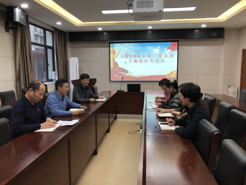 本站讯 根据学校党委及后勤党委关于“不忘初心、牢记使命”主题教育的安排,后勤机关第二党支部于12月4日下午组织召开专题组织生活会,由党支部书记龙立明主持,后勤党委书记崔越峰、副书记宋杰同志以普通党员身份参加会议。