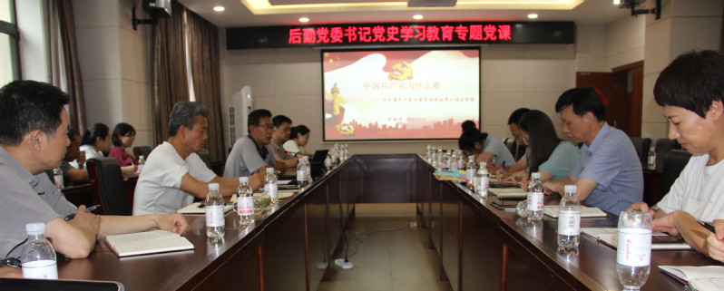 本站讯 7月13日,后勤党委书记党史学习教育专题党课在后勤楼二楼报告厅召开,后勤党委会成员、各支部委员和党员代表近50人参加了会议。