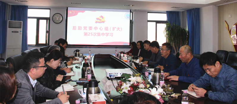 本站讯 11月25日下午,后勤党委举行党委理论学习中心组(扩大)第25次集中学习,传达贯彻党的十九届六中全会精神。后勤党委会成员,各党支部书记、委员参加会议。