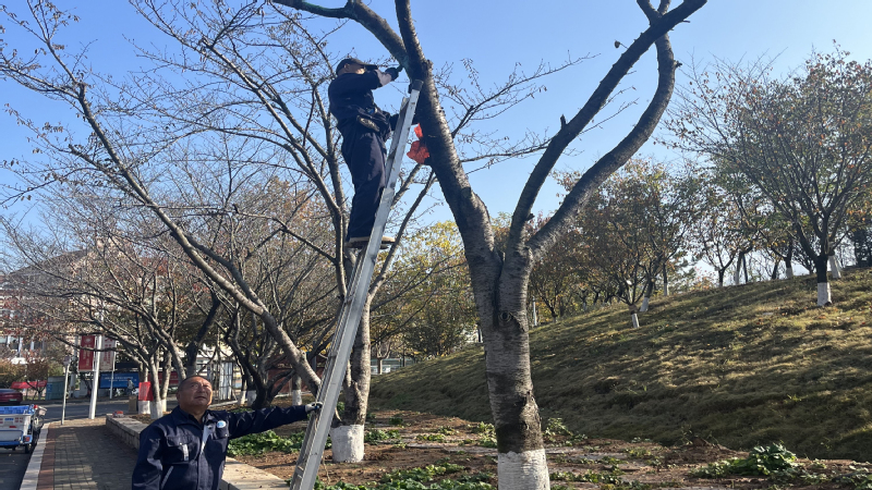 樱花作为校园内一道亮丽的风景线,以其优美的姿态和绚烂的花朵赢得了师生们的广泛喜爱。受地势环境和气候影响,部分樱花树长势欠佳,个别树木出现病虫害、真菌感染等问题,影响其观赏价值和生态功能。为此中心根据专家意见组织专业团队对樱花树进行了全面的检查和评估,并制定了详细的复壮方案。